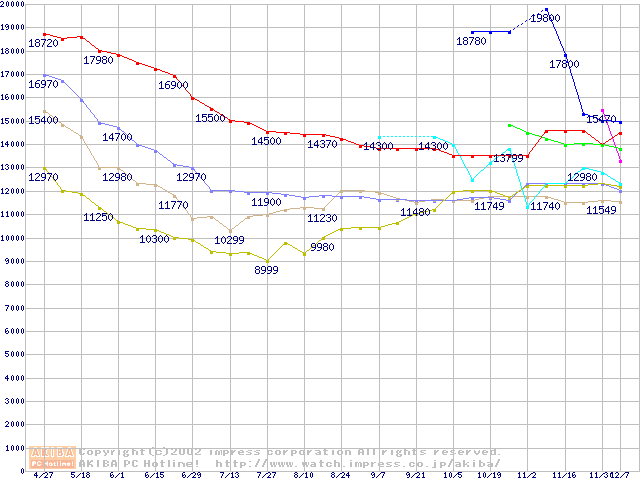 | [↑前グラフ]: | HDD 60GB~80GB未満(7200rpmクラス)の最安値推移 |