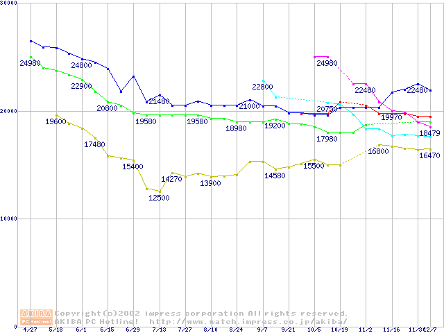 | [↓次グラフ]: | HDD 160GB以上(7200rpmクラス)の最安値推移 |