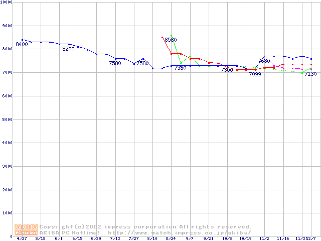 HDD 20GB~30GB未満(5400rpmクラス)の最安値推移