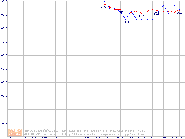 | [↑前グラフ]: | HDD 40GB~50GB未満(5400rpmクラス)の最安値推移 |