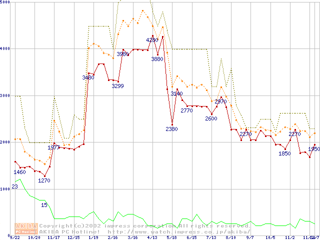 PC133 SDRAM DIMM CasLatency=2の最安値推移