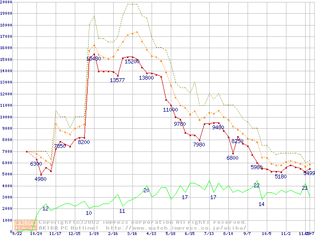 PC133 SDRAM DIMM CasLatency=2の最安値推移