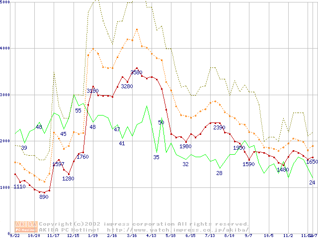 PC133 SDRAM DIMM CasLatency=3の最安値推移