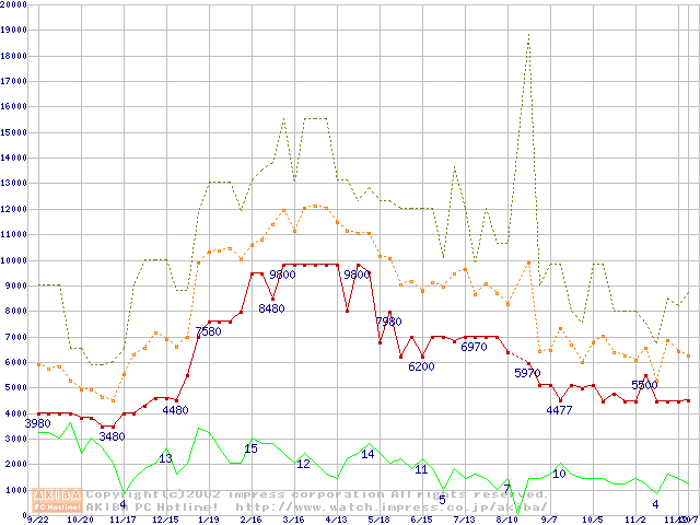 PC133 SDRAM DIMM CasLatency=3 ECC対応の最安値推移