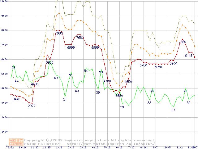 メモリ主要製品の最安値推移