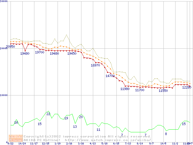 WD Caviar (7200rpm,UltraATA/100,2MB)の最安値推移