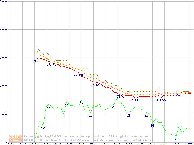 DiamondMax D540X-4G (5400rpm,UltraATA/133,40GB/Platter)の最安値推移