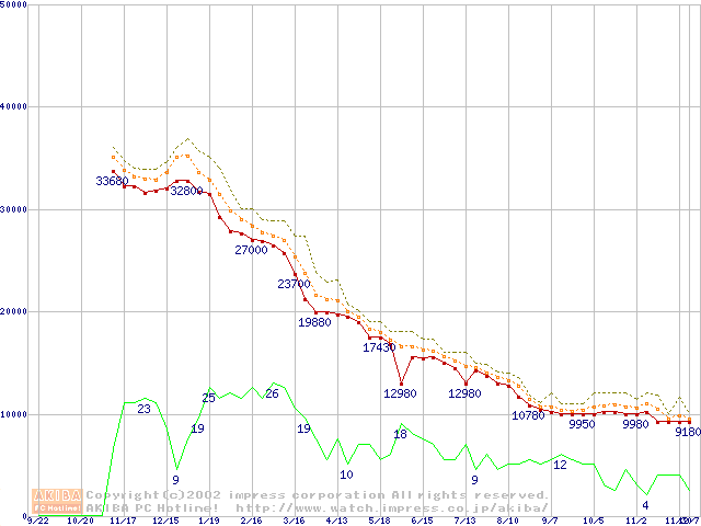 Socket A (OPGA,FSB 266MHz,L2 256KB,Palomino)の最安値推移
