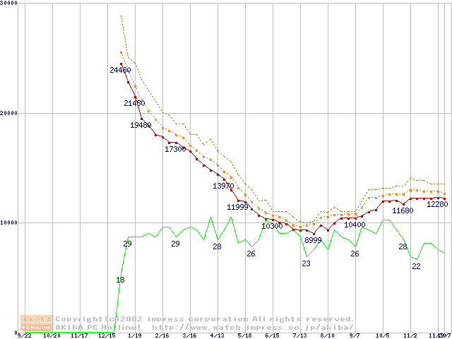Deskstar 120GXP (7200rpm,2MB,UltraATA/100,BB)の最安値推移