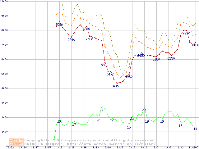メモリ主要製品の最安値推移