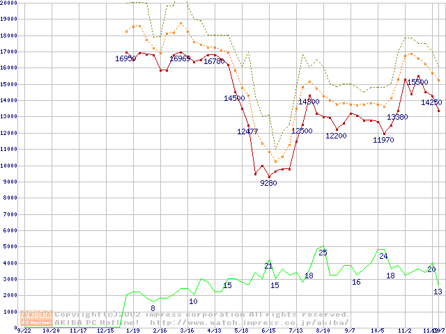 メモリ主要製品の最安値推移