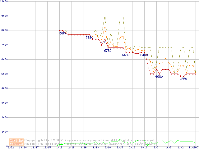 Socket 370 (PGA,FSB 100MHz,L2 64KB)の最安値推移