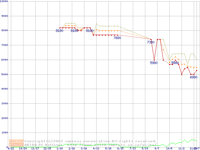 Socket 370 (PGA,FSB 133MHz,L2 64KB)の最安値推移