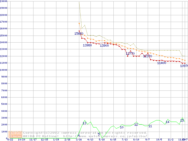 MHRシリーズ (9.5mm,4200rpm,UltraATA/100,2MB,FDB,20GB/Platter)の最安値推移