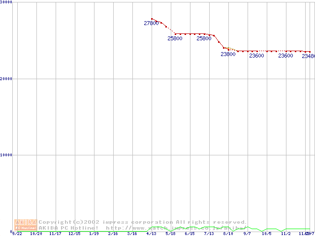 Travelstar 40GN (9.5mm,4200rpm,UltraATA/100,2MB,FDB,20GB/Platter)の最安値推移