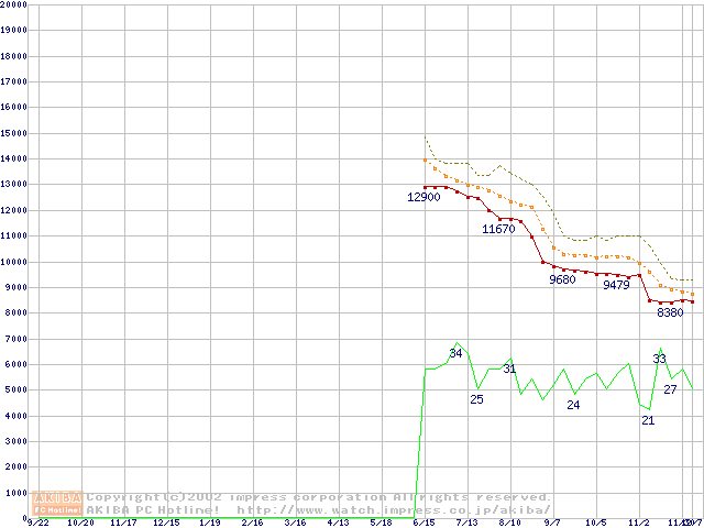 Socket 478 (micro-PGA,FSB 400MHz,L2 128KB,Willamette)の最安値推移