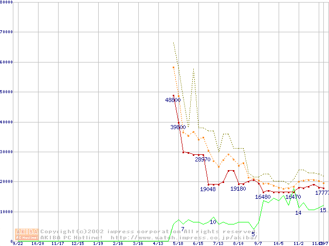 メモリ主要製品の最安値推移