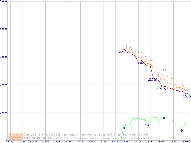 MKシリーズ (9.5mm,5400rpm,16MB,FDB,20GB/Platter)の最安値推移