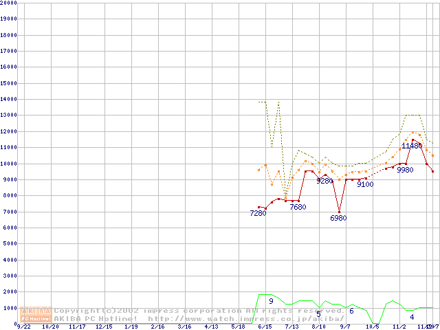 PC2100(DDR266) DDR SDRAM DIMM(CL 2.0) ECC対応 Registeredタイプの最安値推移