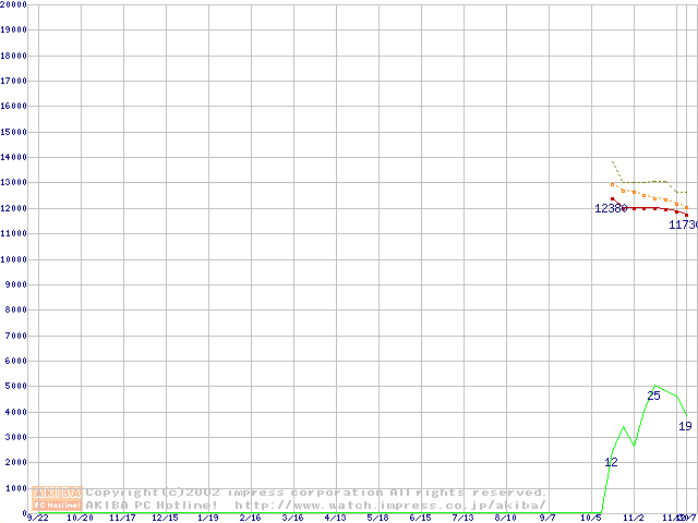 HDD主要製品(最安値1万円~1万5千円未満)の最安値推移