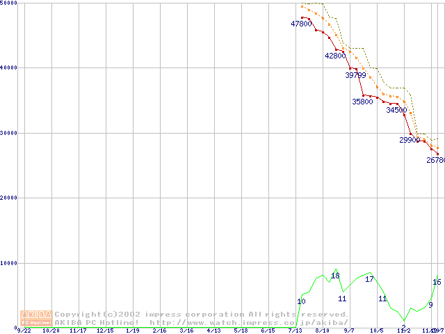 2.5インチHDD主要製品の最安値推移