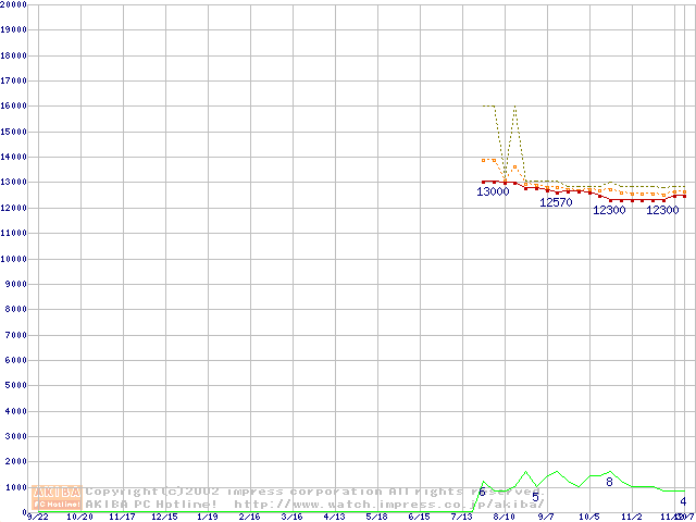 DK23DAシリーズ (9.5mm,4200rpm,FDB,20GB/Platter)の最安値推移