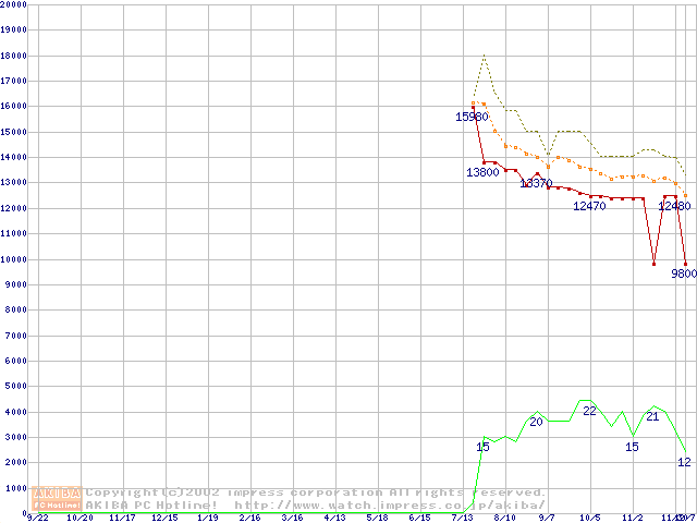 PC1066 DRDRAM RIMM4200(32bit)の最安値推移