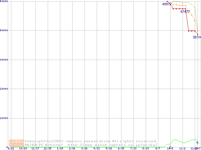 PC1066 DRDRAM RIMM4200(32bit)の最安値推移