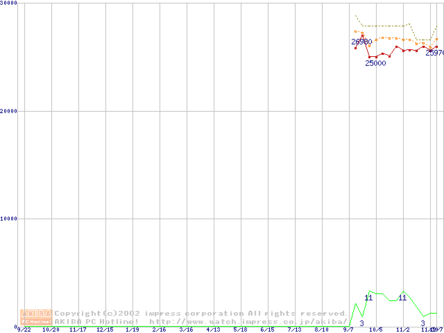 Socket A (OPGA,FSB 266MHz,L2 256KB,Thoroughbred)の最安値推移