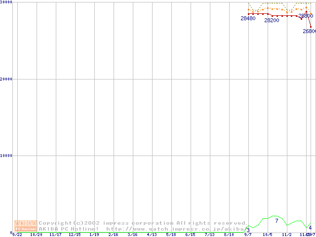 DK23EAシリーズ (9.5mm,4200rpm,2MB,FDB,30GB/Platter)の最安値推移