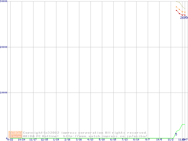 Socket A (OPGA,FSB 266MHz,L2 256KB,Thoroughbred)の最安値推移