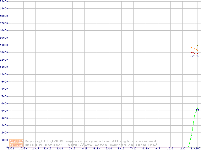 Socket 478 (micro-PGA,FSB 400MHz,L2 128KB,Northwood)の最安値推移
