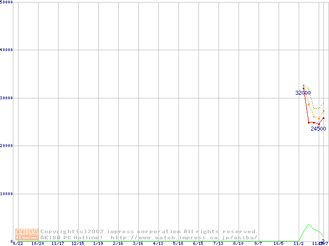 MHSシリーズ (9.5mm,4200rpm,UltraATA/100,2MB,FDB,30GB/Platter,FDB)の最安値推移