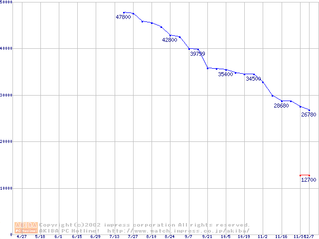 | [↑前グラフ]: | MKシリーズ (9.5mm,5400rpm,16MB,FDB,20GB/Platter)の最安値推移 |