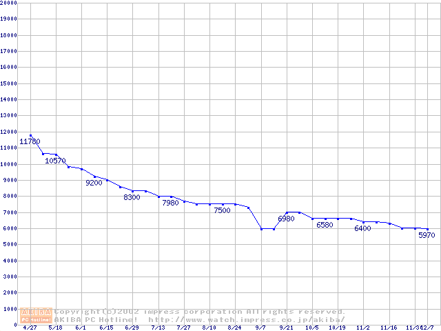 | Socket A (PGA,FSB 266MHz,L2 256KB,Thunderbird)の最安値推移 |