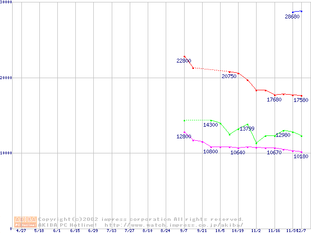 | [↑前グラフ]: | DiamondMax Plus 9 (7200rpm,8MB,UltraATA/133,FDB)の最安値推移 |