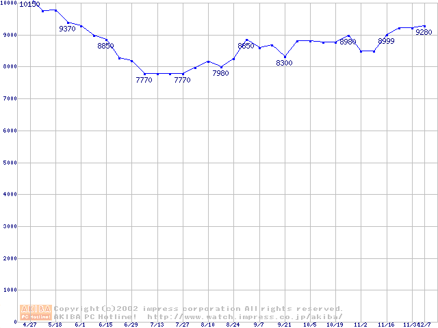 | [↑前グラフ]: | DiamondMax Plus 8 (7200rpm,2MB,UltraATA/133,FDB)の最安値推移 |