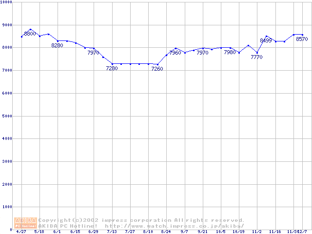 | [↓次グラフ]: | WD Caviar(Special Edition) (7200rpm,UltraATA/100,8MB)の最安値推移 |