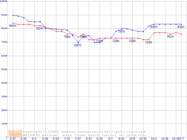 | [↑前グラフ]: | WD Caviar (5400rpm,UltraATA/100,2MB)の最安値推移 |