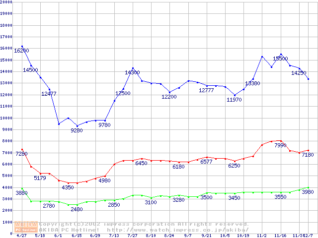 | [↓次グラフ]: | PC2700(DDR333) DDR SDRAM DIMMの最安値推移 |