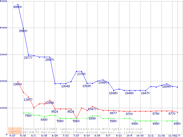 | [↓次グラフ]: | PC3500(DDR433) DDR SDRAM DIMMの最安値推移 |