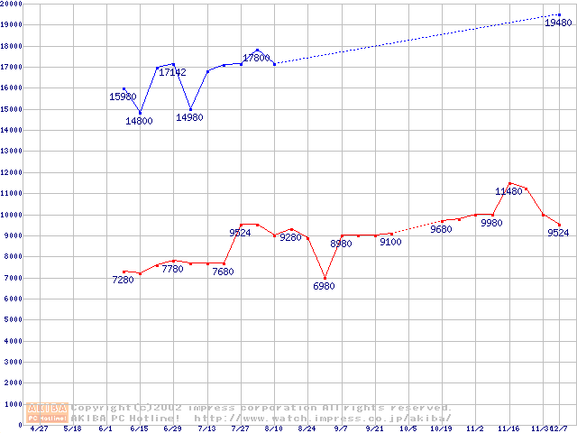 | [↓次グラフ]: | PC2700(DDR333) DDR SDRAM DIMM ECC対応 Registeredタイプの最安値推移 |