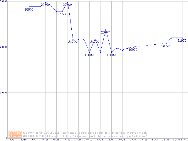 | [↓次グラフ]: | PC133 SDRAM DIMM CasLatency=3の最安値推移 |