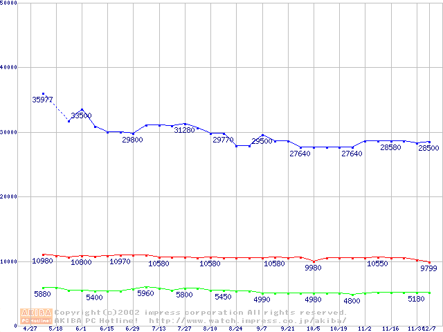 | [↓次グラフ]: | PC800-40 DRDRAM RIMM3200(32bit)の最安値推移 |