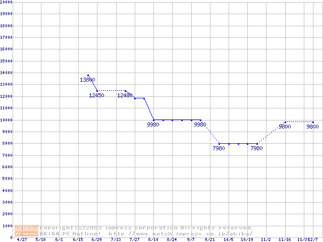 | [↑前グラフ]: | PC800-40 DRDRAM RIMMの最安値推移 |