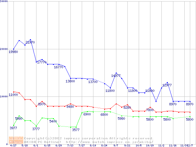 | [↑前グラフ]: | PC133 SDRAM DIMM CasLatency=3 ECC対応の最安値推移 |