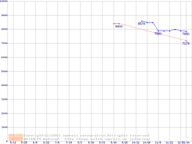 | [↑前グラフ]: | HDD 100GB以上(5400rpmクラス)の最安値推移 |