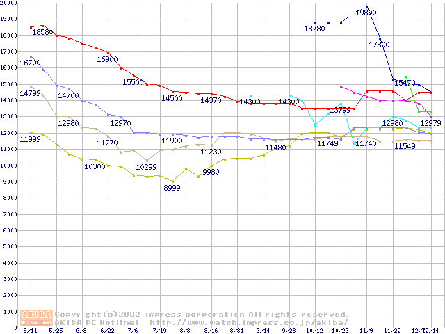 | [↑前グラフ]: | HDD 60GB~80GB未満(7200rpmクラス)の最安値推移 |