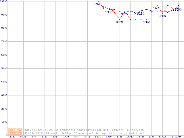 | [↓次グラフ]: | HDD 80GB~100GB未満(5400rpmクラス)の最安値推移 |