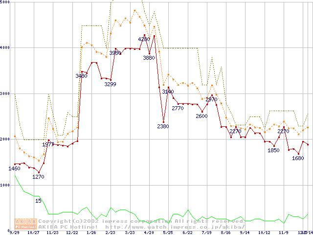 PC133 SDRAM DIMM CasLatency=2の最安値推移